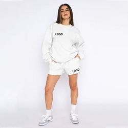 Sudadera con capucha extragrande informal con logotipo personalizado para mujer, conjunto de pantalones cortos recortados, sudadera con patrón sólido de tela de lona, sudaderas con capucha de gran oferta