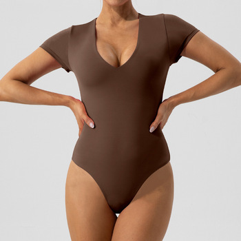 Body moldeador de cuerpo americano europeo de talla grande cuello bajo manga corta Control de barriga adelgazante ajustado Fitness verano