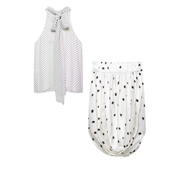 Conjunto de falda y camiseta sin mangas con cuello Halter corto informal para mujer de estilo americano europeo 2025 moda Polka Dot 100% poliéster